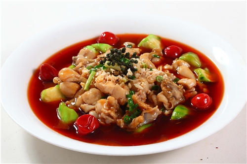 12、关火后浇入辣椒酱汁,搅拌均匀即可。