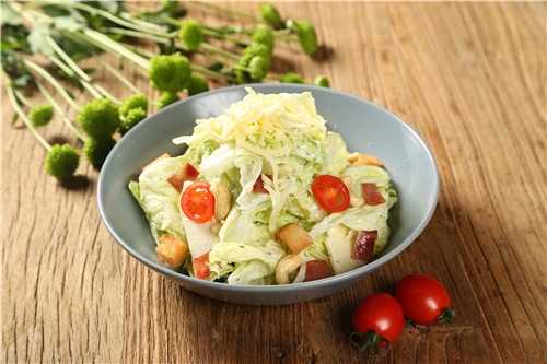 1.热锅后倒油,放入素鸡丁煸炒一下,再放土豆和甘蓝炒至半熟