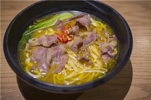 3、锅中放入腌好肉片,滚烫开捞起盖在菜上,把锅里剩余的高汤倒入碗中,在碗里放入葱花香菜辣椒,在倒油烧热,直接浇洒在葱花香菜上。就成了。‘