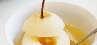 把梨靠柄部横断切开,挖去中间核后放入2~3粒冰糖,1-2粒川贝(川贝要敲碎成末),把梨拼好放入碗里,上锅蒸20分钟左右即可。此方有润肺、止咳、化痰的作用。