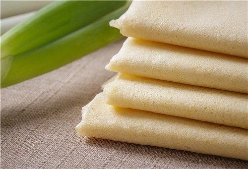 3.豆皮入沸水锅煮3分钟捞出待用。