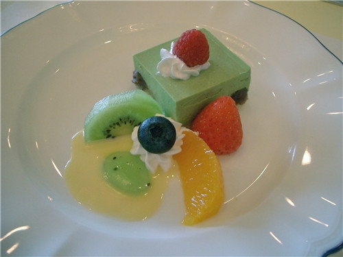 10,淋在蛋糕上凝固,最后用水果装饰。