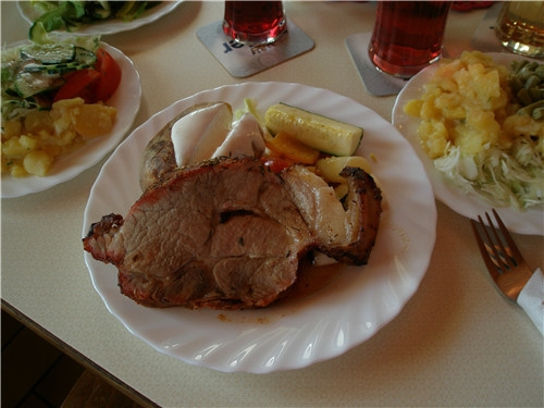 材料:牛排2块、新土豆1个、洋葱小半个、生菜适量